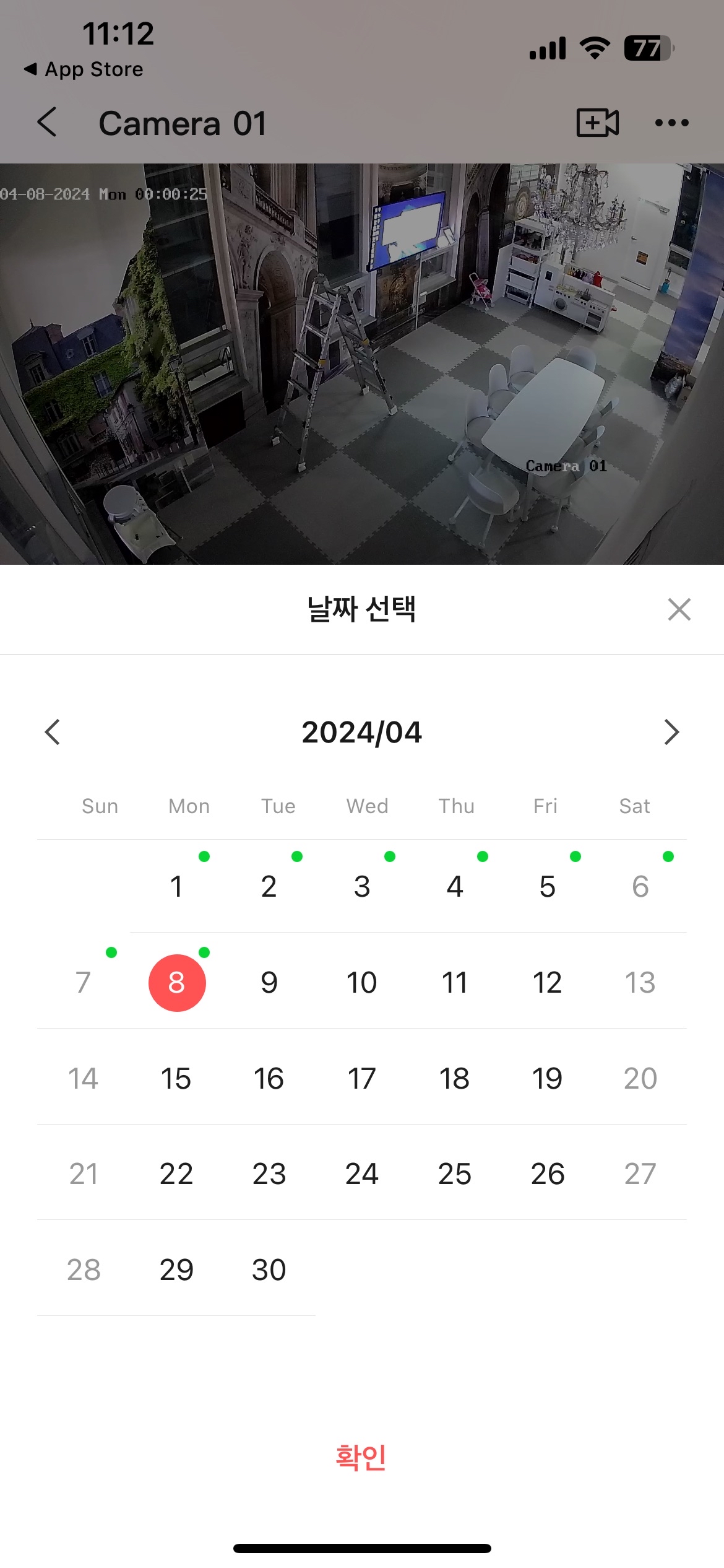 재생 버튼을 터치하여 녹화 영상 화면으로 진입